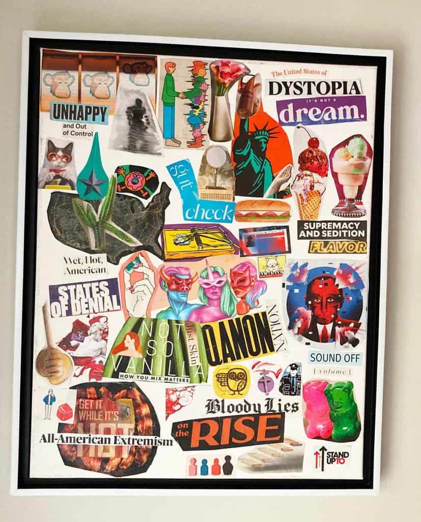 Marie (she/her/hers) is a painter, poet, and mixed media artist based in Chicago. Her practice focuses on critiquing the dystopia in society. Marie hopes people will look at her work and see the connections between reality and what they can imagine. She views the world from a psychological perspective and aims to use social movements as a lens for change. Marie’s art is meant to invoke conversation about human rights and for audiences to challenge societal norms and to better understand themselves.