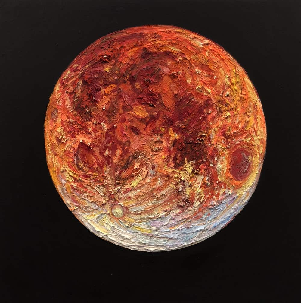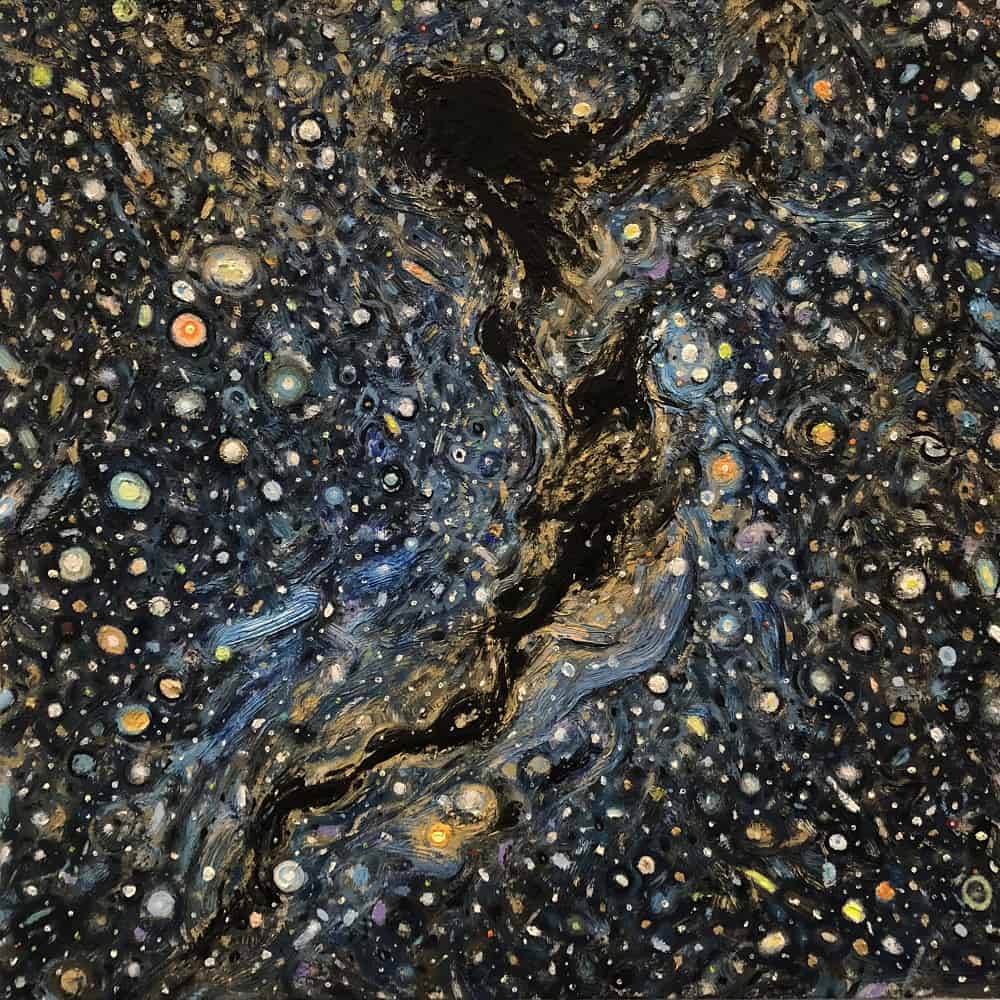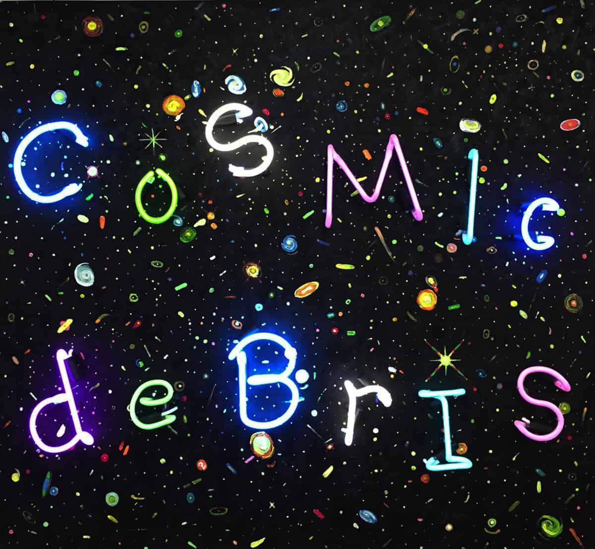 Combining the media of painting and neon, COSMIC DEBRIS explores the vastness of the universe, the transience of the individual, and the life force that connects all things. The essential pigments in oil paints… the noble gases that animate neon tubes… and the physical architecture of the human body… all are made from the dust of stars. Yet despite our inherent connection to a vast universe, our own human affairs are impossibly small and perhaps accidental in the grand scheme of things. COSMIC DEBRIS highlights this contrast: the impermanence of a single life, the infinite nature of life itself. The juxtaposition is both unsettling and comforting. The neon phrases that illuminate these paintings evoke these enigmas for me: the cycle of breath, the cycle of stars, and the deep serenity that comes from contemplating the night sky.